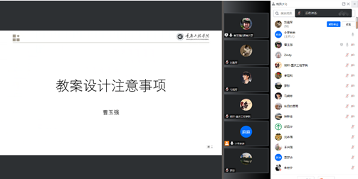 然后由教研室主任曹玉强教授为参会人员分享了教案设计的注意事项。曹教授首先强调了教案设计的重要性,他指出教案设计是教学工作的重要组成部分,能够帮助教师有效地组织教学内容,提高学生学习成效。接着,他介绍了教案设计的主要原则和方法,提醒参会人员在设计教案时要注意以下几点: