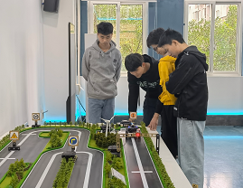 王朝卿老师向学生们介绍了中兴ICT实训基地各“5G+”互联互通项目。终端产品,包括电话机、传真机、发报机等,展示了早期模拟通信技术的成果;智慧交通沙盘,是物联网专业的主流应用场景,主要作用是展示及验证,学生在物联网实训室二次开发后,可在此沙盘进行验证;智慧医疗系统,除了物联网应用层展示之外,展厅采集数据可与云计算实训室数据互通,开展云计算与边缘计算实验;远程驾驶系统,实际上是一套仿真设备,模仿车辆驾驶舱,将机械动作调制成电信号,再通过通信网络由5G无线信号的方式发送,车辆接收到后将电信号还原成机械动作,实现远程驾驶;MR系统,即混合虚拟现实系统,数字媒体内容是从机架到机框到单板的展示,演示员在视觉上有身临其境的感觉。