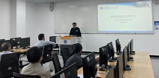 为深入贯彻落实习近平总书记关于教育的重要论述、全国教育大会和全国高校思想政治工作会议精神,贯彻落实中共中央办公厅、国务院办公厅《关于加强和改进新形势下高校思想政治工作的意见》,落实学校本科教学课程思政建设工作会议精神,2023年4月7日下午网络工程与信息安全系在7801学习课程思政相关文件。会议由张杰主任主持,教研室全体教师参加了会议。