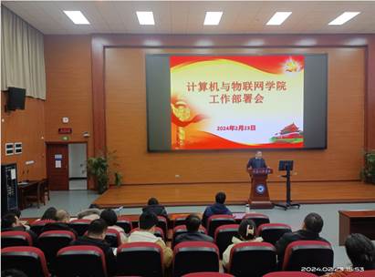 本网讯(文/图 罗桓)2月23日下午,计算机与物联网学院在7807报告厅召开新学期开学大会暨师德师风培训会,党委副书记、常务副校长张业平出席会议。
