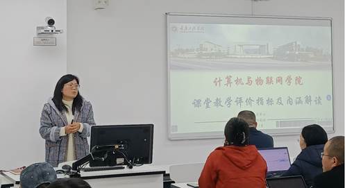 本网讯(文/ 杨成莉 图/雷仕英)为构建高效、动态、协同的教育生态系统,共同提高学院的教学质量,3月6日下午,学院邀请教发中心杨剑利督导位临我院,就课堂教学评价指标及内涵进行了深入的解读与指导,院长李发陵、书记覃华伟带领全院教职工一起聆听学习。
