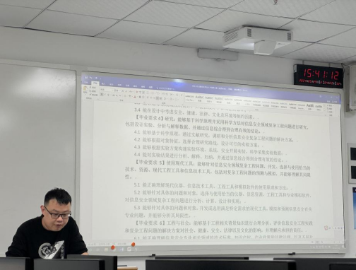 本网讯(文/图 何豪)5月29日下午,网络工程与信息安全系在7802教室开展了第14周的教研会议,系部全体教师参加,系主任张杰主持。本周教研会主要有两项议题,一是基于OBE理念教学大纲修改;二是教学工作的安排部署。
