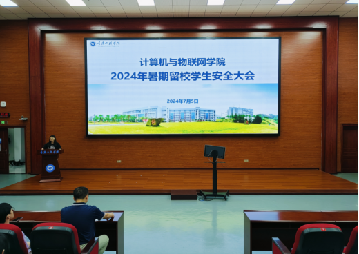 本网讯(文/图 余远志)为进一步落实暑假留校学生的安全教育工作,维护假期校园安全稳定,2024年7月5日12:30于7807成功开展计算机与物联网学院2024年暑期留校学生安全大会,党总支书记覃华伟、各基地、各项目指导老师以及全体辅导员、留校学生参加了此次会议。