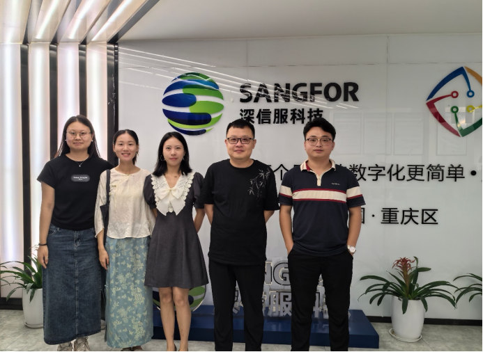 本网讯 (文/图 魏克非 包致婷) 2024年7月25日上午,网络与信息安全系张杰、何睿、包致婷老师走访了重庆深信服科技股份有限公司,该公司专注于企业级网络安全、云计算、IT基础设施与物联网的产品和服务供应商。业务涵盖边界安全、终端安全、身份与访问安全、办公安全、数据安全、云安全、安全服务等领域。首先张杰老师交流了何老师和包老师具体的实习工作内容,了解工作进度;其次探讨云对抗竞赛相关事项;最后就2025届本科毕业生需求情况进行交流,预计合作5家渠道商企业解决近70名学生实习就业。