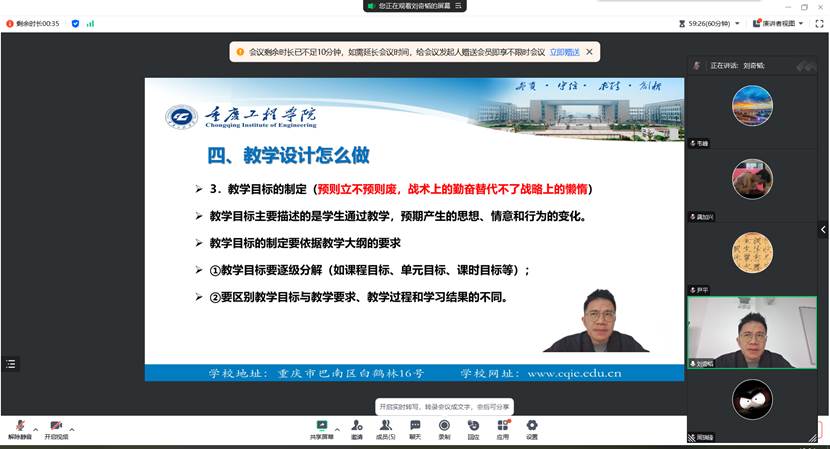 刘奇韬副教授从“教学中的学生常见问题”、“教学设计的主要内容”、“教学设计解决的问题”以及“教学设计怎么做”等四个方面进行了讲解。