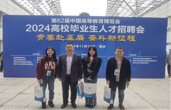 本网讯(文/图 魏克非) 2024年11月15日,在学校招生与就业处的精心策划和组织下,我院就业科科长魏克非以及三名毕业班辅导员——王玲、尤洋、李心怡,带领全校200余名2025届毕业生,乘坐4辆大巴车前往重庆悦来国际会展中心,参加了备受瞩目的“第62届中国高等教育博览会2024高校毕业生人才招聘会”。