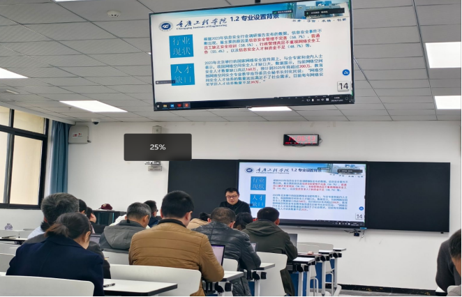 学院一共有计算机科学与技术、物联网工程、网络工程、信息安全、区块链工程5个专业,以孙令翠老师为代表的5位专业负责人经过前期的认真准备和李发陵院长的悉心指导与宝贵建议下,他们满怀激情与责任感,依次上台,就各专业办学定位和特色、专业培养目标及培养方案、专业建设举措与成效、专业发展规划等方面进行了全面而生动的阐述。他们结合各自专业的实际情况,深入剖析了专业发展的现状与未来,提出了切实可行的未来努力的建设方向。