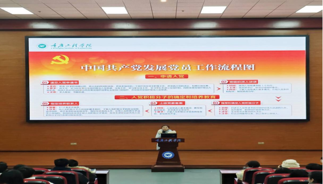 会上,党总支书记黄涛从思想上、行动上、示范上提出要求,全体同志要主动学勇担当,从学习习惯、宿舍卫生等小事做起,带头发挥榜样示范作用。魏登雪老师围绕党员发展的5各阶段25个步骤,详细讲解了党员发展流程,并现场解答学生咨询问题,使积极分子清晰掌握入党事宜。最后,3个学生党支部支委会委员分别与入党积极分子认识见面。