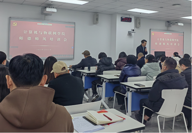 2月21日,计算机与物联网学院在1101召开第1次全体教职工政治理论学习会,党总支书记黄涛领学习近平总书记在民营企业座谈会上的重要讲话精神。