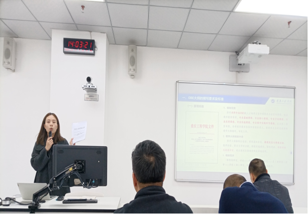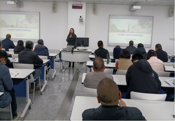 培训会上,秦科长围绕OBE理念的核心要求,结合学院教学实际,系统讲解了教学大纲编写、课程目标设计及实践教学环节的规范化流程,重点从OBE大纲编写标准的定位与目标、考核与成绩评定、程序规范,课程设计目标、教学内容和实践学时的表格化呈现需要注意一致性,以及已实施的OBE课程的常见问题和专家提出的改进意见等方面展开。