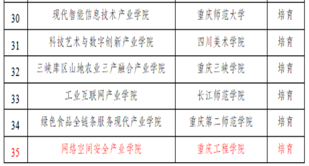 近日,市教委公布《关于公布重庆市第二批现代产业学院立项(培育) 名单的通知》,重庆工程学院申报的 “网络空间安全产业学院” 成功入选立项(培育)项目。这是学校深化产教融合、服务国家网络安全战略和重庆数字经济发展的重要里程碑,这是重庆工程学院首个重庆市现代产业学院,是学校在学科建设、校企协同育人方面新的里程碑。