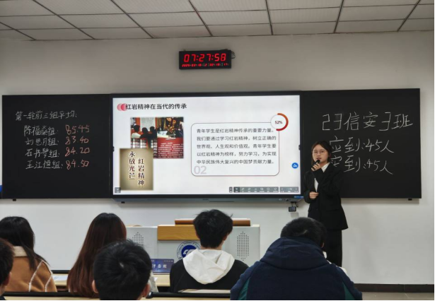 课上,14名党员学长围绕《红岩精神,时代先锋的力量源泉》这一主题,生动讲述了江竹筠等革命先烈在至暗时刻坚守理想信念的崇高事迹强调红岩精神是党光辉历程的见证,是民族精神的重要组成部分他们用青春话语诠释信仰力量呼吁同学们坚定理想信念,勇担时代重任最后,辅导员勉励学生们关注并身边那些传承红色基因的点滴善举,把理论学习的成果切实转化为日常的具体实践。
