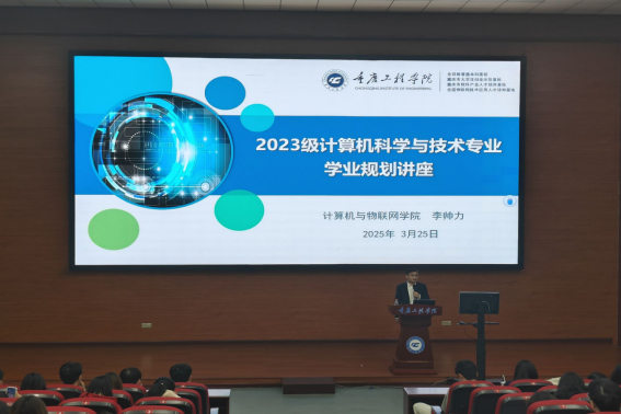 本网讯(文/图 李帅力)2025年3月25日19时,计算机与物联网学院在第七教学楼807报告厅成功举办了2023级计算机科学与技术专业学业规划讲座,讲座由李帅力老师主讲。此次讲座旨在帮助2023级学生更好地规划大学学业,明确专业学习目标和方向。