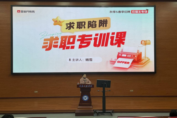 本网讯(文/图 魏克非)2025年3月30日18:30计算机与物联网学院在7807报告厅圆满举办了一场主题为《慧眼识陷阱 护航求职路 —— 大学生求职避坑指南与安全防范实务》的专题讲座,本次讲座由经验丰富的职场专家杨雪担任主讲嘉宾,吸引了众多即将步入职场的学生到场聆听。