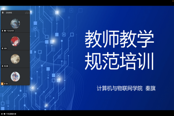 本网讯(文/图 刘棋)2025年4月2日上午,计算机与物联网学院开展了主题为“教师教学规范”的新教师培训会,由学院教务科科长秦旗主讲,学院全体新教师线上参会。