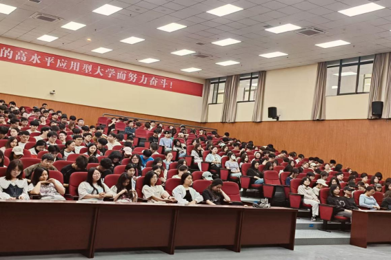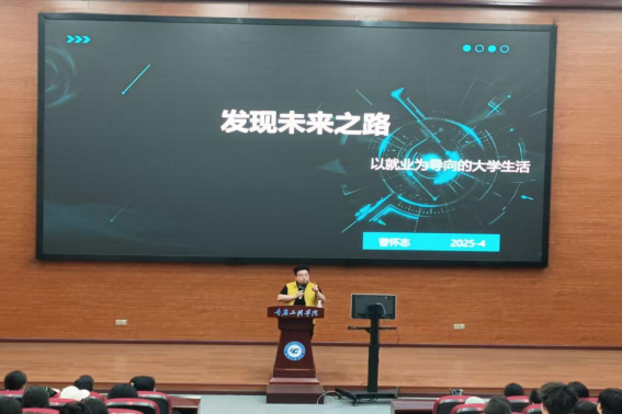 本网讯(/图 魏克非)为助力学生科学规划大学生活、明确职业目标、提升就业竞争力,我院于2025年4月13日18时30分在7807报告厅成功举办“发现未来之路--以就业为导向的大学生活规划”专题讲座。本次讲座特邀重庆瑞萃德科技发展有限公司总经理曹怀志担任主讲嘉宾,300余名大二学生到场聆听。