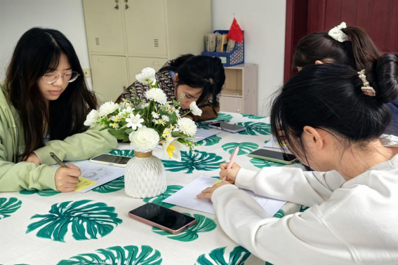 活动伊始,同学们分享自己生活中的快乐故事或美好瞬间;随后领取了卡片和绘画工具,开始制作感恩卡片,他们写下自己对身边人或事物的感恩之情,并将卡片送给对方,用色彩和线条表达自己的情绪;同时,活动现场还设置了情绪音乐角,播放舒缓的音乐,通过音乐来放松身心,释放压力。