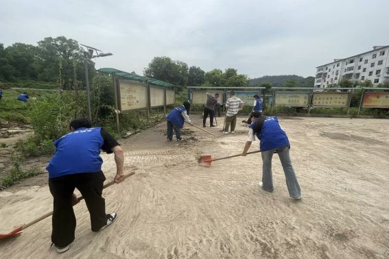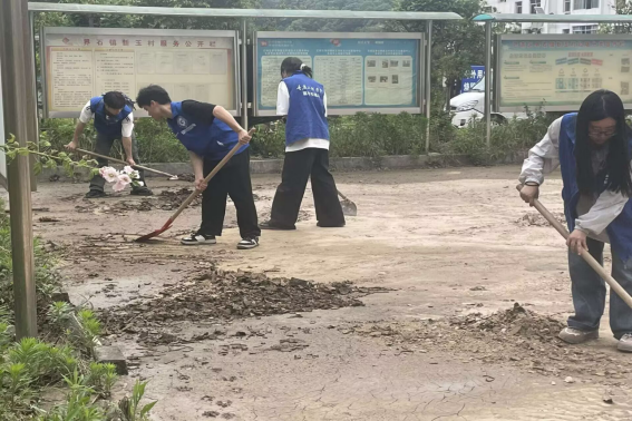 新玉村党支部电话联系学院党总支,学院第一时间集结党员教师、码小农志愿者队成员等19人组成突击队,由党员教师周思琦带队赶赴一线。突击队与当地村民紧密协作,针对河道倒伏树木、大院淤泥堆积等重点区域展开志愿服务,完成河道疏浚、淤泥清运等任务,恢复河道正常排水,清除大院90%以上淤积物,有效化解次生灾害隐患。