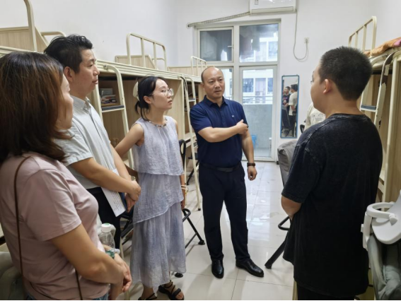院长李发陵等一行深入各年级学生公寓,与学生面对面交流。在走访过程中,领导们详细询问学生的住宿体验、饮食情况及生活需求,耐心倾听学生在日常学习与生活中遇到的困难,针对公寓设施维护、作息安排等问题现场记录反馈,让学生感受到学院的暖心关怀。同时,老师们重点查看了公寓内的学习角、自习区域,仔细检查照明、桌椅等硬件设施是否满足学习需求,了解学生在公寓内的学习习惯与氛围,针对部分公寓存在的学习环境薄弱问题提出优化建议,如增设书架、规范自习秩序等。