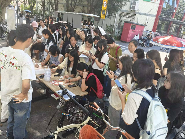 活动现场气氛庄重而温馨。在“心愿寄语”环节,同学们纷纷驻足书写区,将对祖国的深情凝于笔端,每一句留言都承载着真挚的祝福与坚定的信念。书写完成后,同学们将一张张饱含情感的心愿卡张贴于活动海报之上。原本空白的海报逐渐被五彩斑斓的心愿填满,汇聚成一幅充满温度与力量的“爱国画卷”,充分展现了青年学子昂扬向上的精神风貌与爱国情怀。参与寄语张贴的同学还领取了活动纪念品,现场洋溢着浓厚的爱国热情与青春活力。