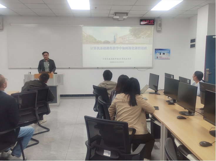 活动伊始,李帅力老师阐述了开展本次教研活动的背景与意义。他指出,计算机基础课程不仅是学生学习计算机科学的重要起点,更是落实以文化人、以德育人理念的重要阵地。在当前高等教育全面推进课程思政建设的背景下,教师应主动挖掘专业知识中的思想政治教育资源,将价值引领与技能培养相融合,实现知识传授、能力培养与价值塑造的有机统一。李老师强调,课程思政不是附加任务,而是教学设计的内在要求。教师应通过科学的教学设计和生动的课堂实践,让学生在掌握计算机技术的同时,树立正确的网络伦理观与社会责任意识,培养科技报国、服务社会的使命感。