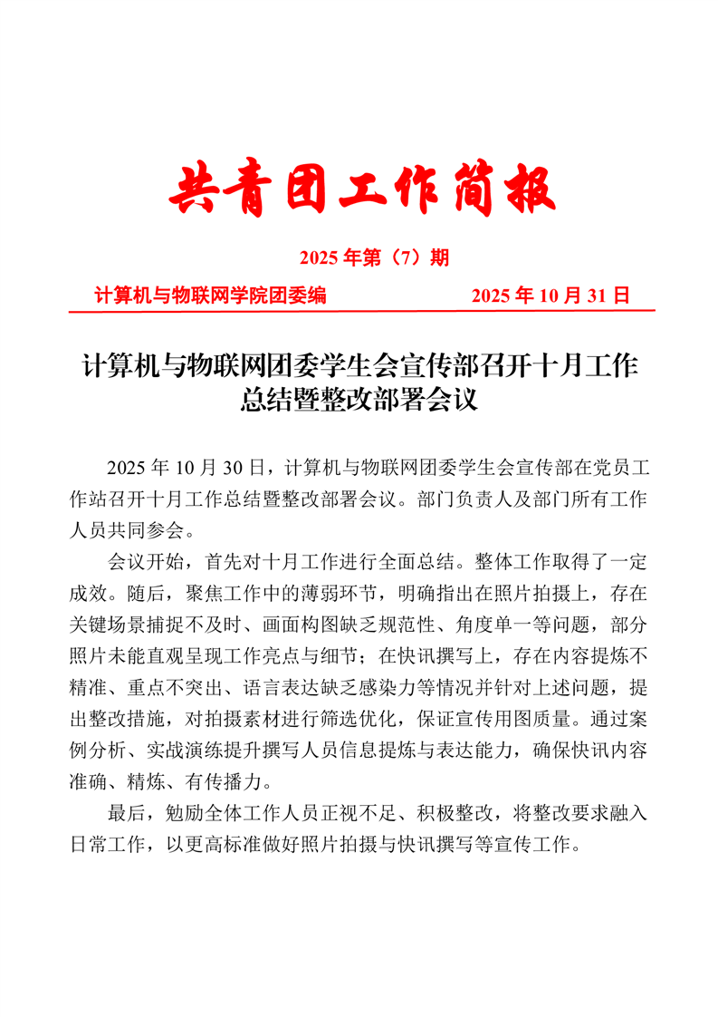 计算机与物联网团委学生会宣传部召开十月工作总结暨整改部署会议