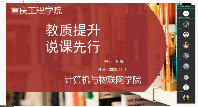 本网讯(图/文 王朝卿)2025年11月6日晚,计算机与物联网学院开展了“说课”专题新教师培训会,由网络工程与信息安全系主任何睿主讲,学院全体新入职教师线上参会。