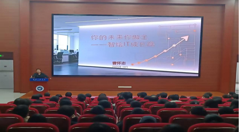 本网讯(图/文李清文)为搭建学生与产业的沟通桥梁,助力学生匹配职场需求,明晰奋斗目标,2025年11月12日下午,计算机与物联网学院组织开展“你的未来你做主——智绘IT成长路”主题讲座,特邀嘉宾重庆人工智能学会副秘书长曹怀志为大三学生解析IT行业发展与职业成长路径,此次讲学院大三学生参加。