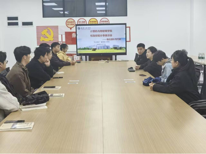 本网讯(图/文郝恬)3月17日,计算机与物联网学院优秀校友经验分享座谈会顺利举行。2022届物联网工程专业毕业生、中国人民解放军某部队王吉校友专程从海南返回母校,以线下+线上直播的形式,为学弟学妹们带来主题为“我在部队写代码”的精彩分享。