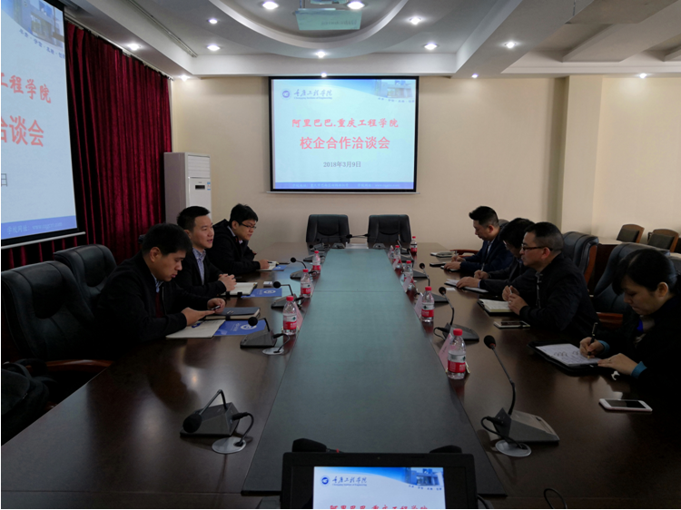 首先裘总介绍了阿里巴巴客户体验事业群的基本情况,并介绍了与现有高校开展校企合作的运行情况,希望能够与更多的高校开展深度、持续稳定的产教融合、校企合作。然后程校长介绍了重庆工程学院的基本情况和“通、专、行”的人才培养模式,并表达学校高度重视能与阿里巴巴合作。接着简院长介绍了管理学院的发展情况和与阿里巴巴进行校企合作的初步构想,并表示管理学院有能力、有条件、有信心将校企合作各项工作落地。