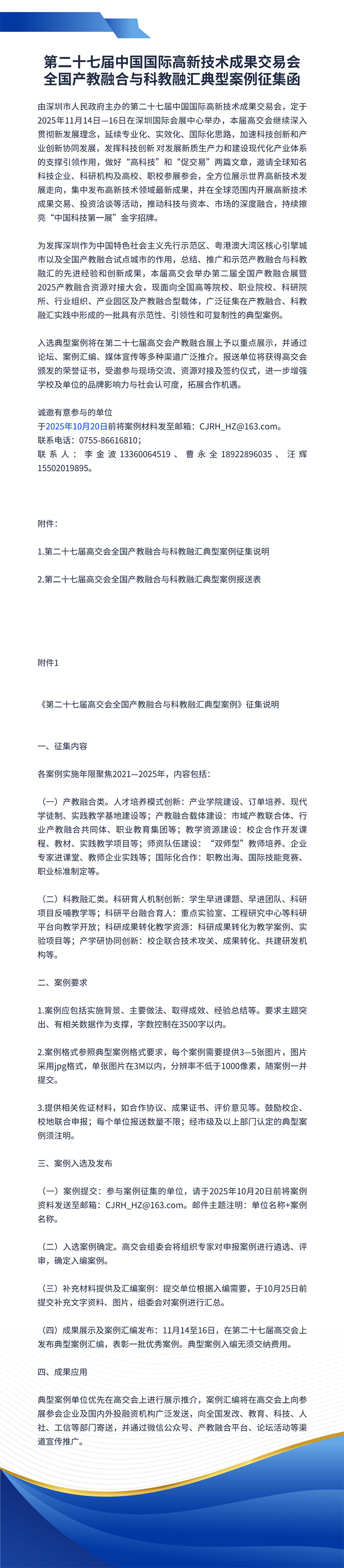 第二十七届高交会全国产教融合与科教融汇典型案例征集通知
