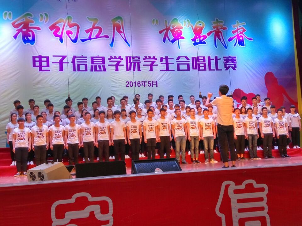 本网讯(电子信息学院 刘顺江)为丰富校园文化生活,营造蓬勃向上的校园文化氛围,电子信息学院于5月11日在学术报告厅举行了“‘香’约五月·‘樟’显青春”为主题的学生合唱比赛。本次比赛邀请了学校教职工歌手大赛两次冠军获得者,校歌作曲者图书馆黄静老师,中国音乐协会会员、图书馆戴红兵老师、学工部李婷老师、管理学院徐培芳老师及两名校园歌手胡力丹、严怡琳担任评委。