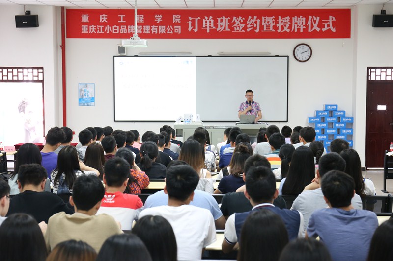 此外,仪式上,江小白公司汪应伟副部长对江小白公司做了详细的介绍,该公司“重视年轻人、重用年轻人”、“敢于破格提拔年轻人”的企业文化给同学们留下了深刻的印象,汪部长希望同学们可以发挥天马行空的想象,但执行必须脚踏实地,他也诚挚邀请同学们踊跃报名参加订单班,并预祝同学们在江小白拥有一个良好的发展前景。