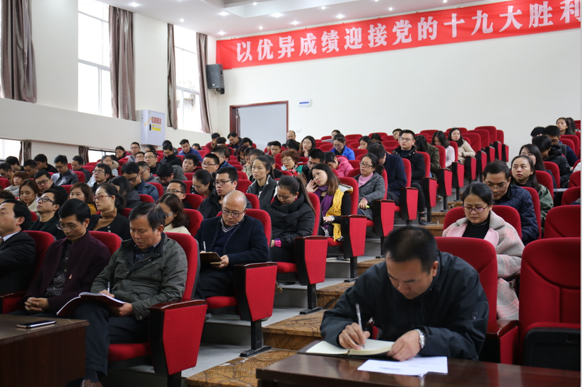 校长唐一科、党委书记张业平、副校长程昌华、党委副书记盛友兴、纪委书记兼工会主席冉启蓉、校长助理唐小勇,全体中层以上干部,机关职能处室、中心全体工作人员,各二级学院辅导员,部分学生代表共计200余人参加宣讲报告会。
