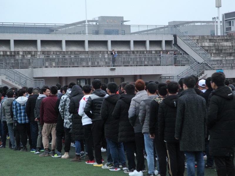 本网讯(文\校团委黄涛、大学生记者团姜虹 图\学生处和双桥校区) 为帮助刚刚返校的同学从休闲的休假状态迅速调整到紧张的学习状态,2月26日早晨,重庆工程学院在南泉和双桥两个校区体育场,同时举行立德朝会“国旗下的演讲”开学第一课活动。