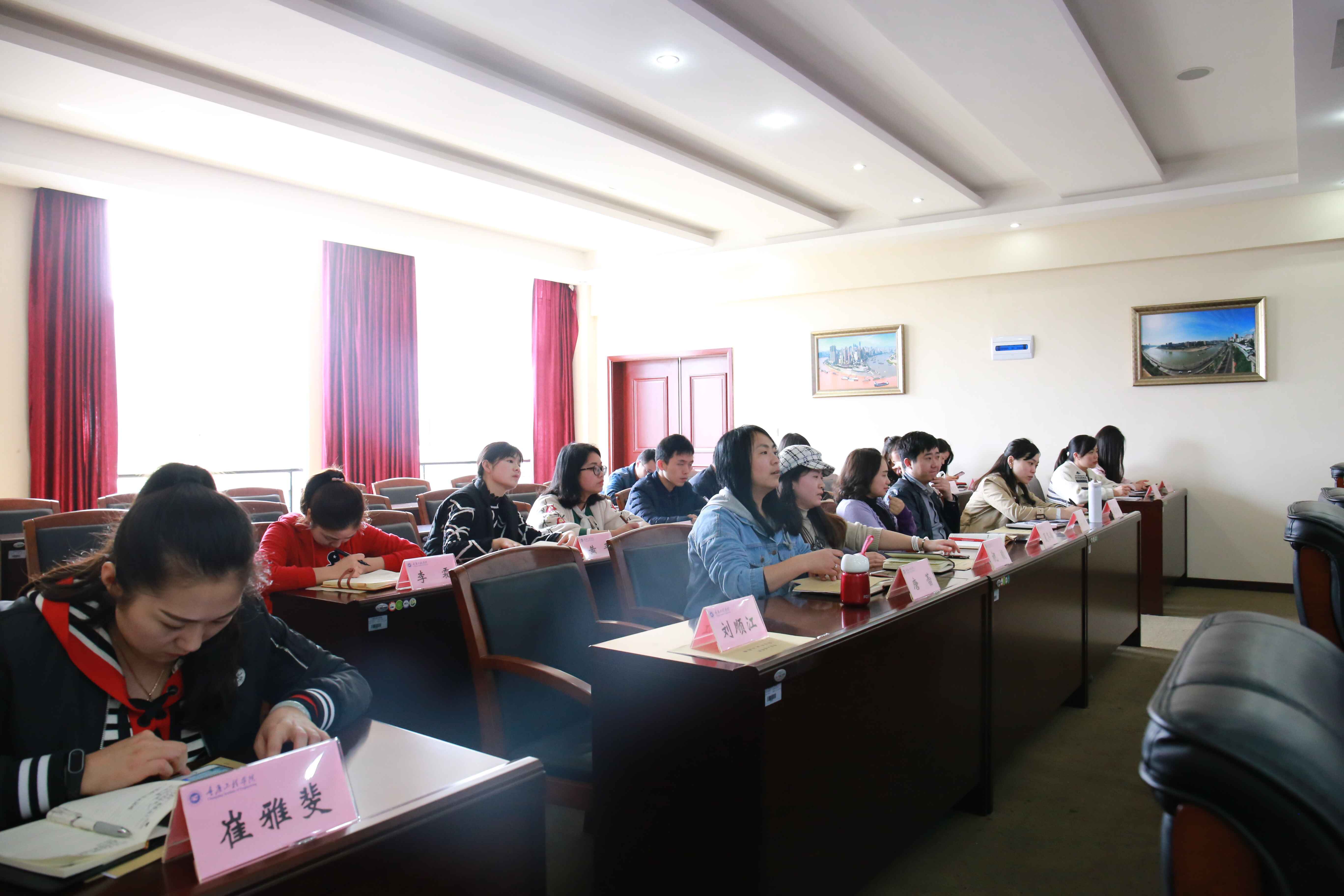 学校纪委书记兼工会主席唐小勇,各二级学院党总支书记,机关相关职能部门负责人,南泉校区《形势与政策》课全体授课教师,共 30多人参加培训。会议由学校党委宣传部刘胜江部长主持。