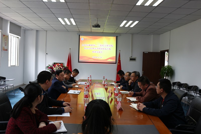 大足区就业局曾凡明副局长、蔡庆跃副局长,学校校企合作办秦凤梅主任、招就处王建东处长等学校和大足就业局相关人员参加座谈交流。