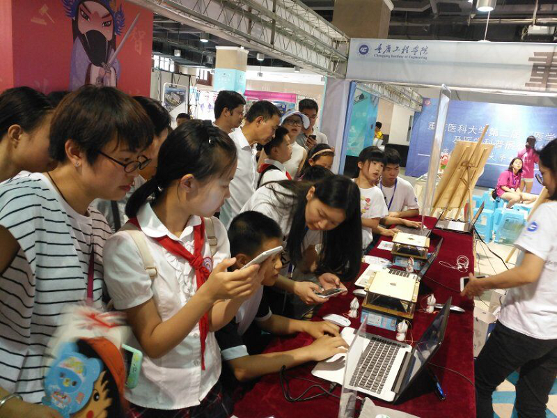 我校共有10多项师生研发的科技作品亮相该活动周,其中国学启蒙教育系列动画短片《训蒙学堂》、川渝地区传统民居结构数字表现、重庆火凤凰等文化类创意产品,向广大市民宣传中华优秀传统文化和计算机深蓝文化,吸引到场观展市民驻足围观,《火场逃生》《快乐校园》《细菌大扫除》等数款科普体验类游戏,受小观众们追捧。