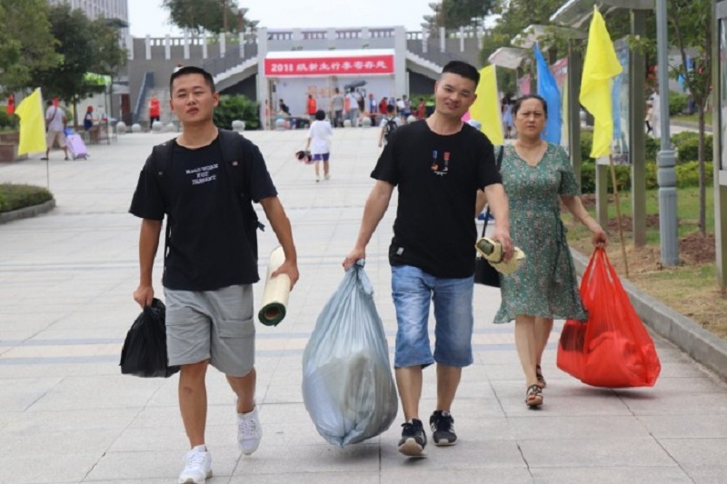本网讯(文/图 大学生记者团) 根据学校2018年迎新接待工作安排,我校2018级4000多名新生将在9月4-5日报到。但3日这天,就有500多名新生和家长提前赶到我校双桥新校区报到。