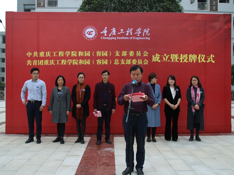 学校党委组织部唐小勇部长为3个特设党支部,学校党委盛友兴副书记为2个团总支授牌。