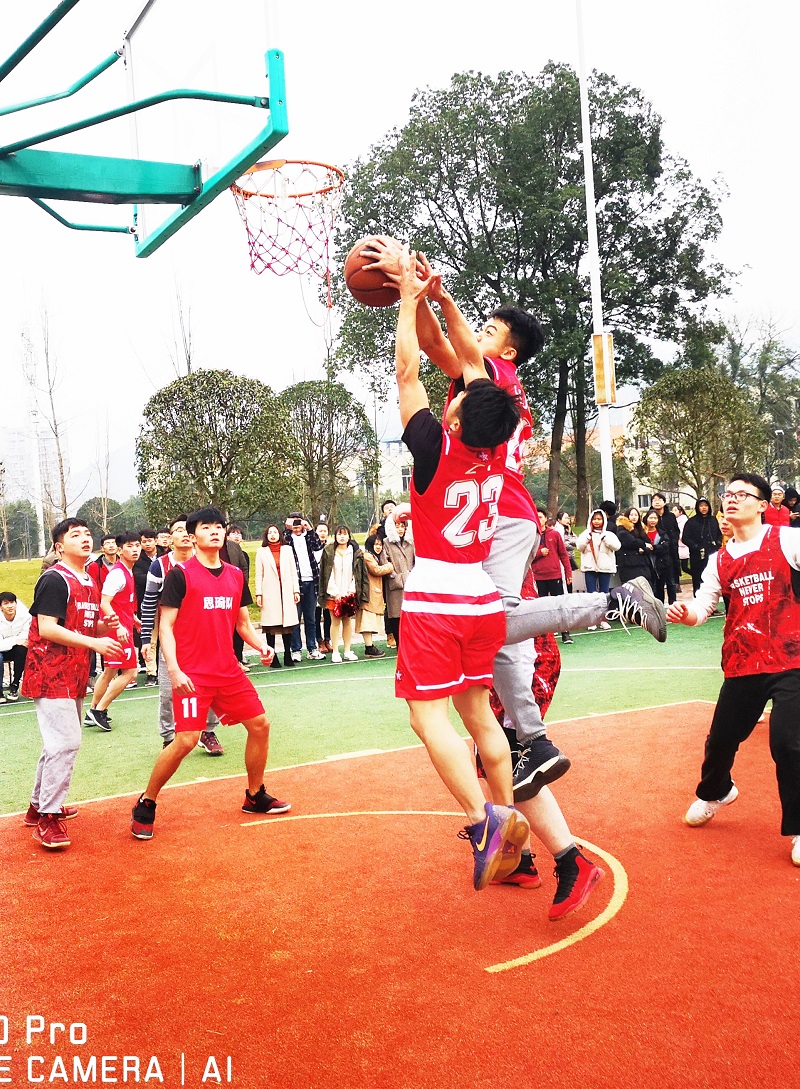 本网讯(文/软件学院谭宇宏、大学生记者团)12月12日中午,学校南泉校区体育场热闹非凡。以软件学院软件工程1690017-24班为主组建的“战隼队”和以软件工程1790009-12班为主组建的“思琦队”,在篮球场上你来我往,攻防转换。