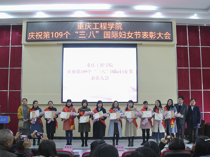 本网讯(文/校工会 熊力 图/大学生记者团)3月7日中午12时50分,重庆工程学院纪念“三八”国际劳动妇女节109周年暨“三八红旗手”评选表彰大会在南泉校区行政楼一楼报告厅隆重举行。副校长程昌华、副校长王琼花、纪委书记兼工会主席唐小勇出席,各二级学院党总支书记、各基层工会主席以及其他教职工代表共计200余人参加。