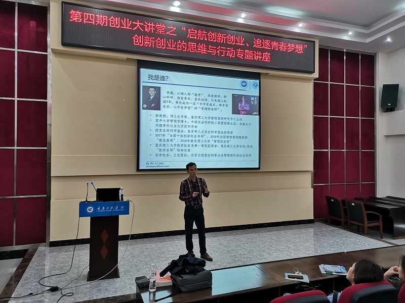 本网讯(文/图 创新创业园 孙傲)5月7日下午,重庆工程学院第四期创业大讲堂在行政楼阶梯教室开讲,主讲嘉宾为由副教授、硕士生导师、南开大学管理学博士、中国社会科学院工商管理博士后李巍教授,全校师生代表200余人参加。