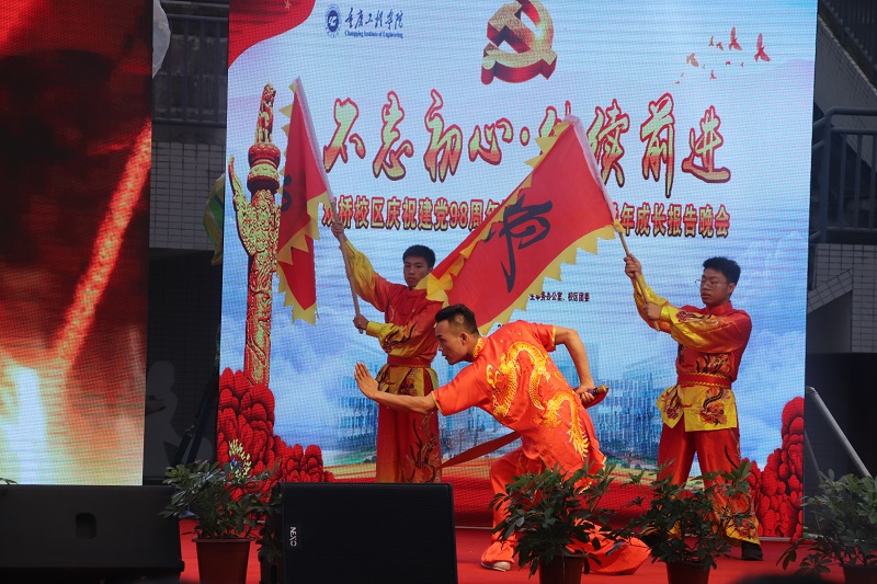 晚会分“尽责守信、筑牢初心”,“求精创新、担起使命”,“告别双桥、遇见南泉”三个篇章,既有融入爱国之情的《中华世纪坛赋》和党员实践中心同学带来的《经典回响》,也有展示双桥校区“红蓝绿”班级文化建设成果的《青春报告》与《五四赞歌》。同学们用真挚的情感、昂扬的状态、嘹亮的歌声、欢快的舞姿,向党的生日献礼。