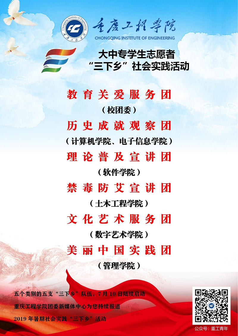 本网讯(文/图 校团委 江雪齐)为了引导广大学子培育和践行社会主义核心价值观,号召青年大学生走出校园了解国情,为社会主义新农村建设做贡献,根据团中央精神和团市委相关安排,在学校各级团委精心组织下我校组织进行了2019年暑期“三下乡”社会实践活动。