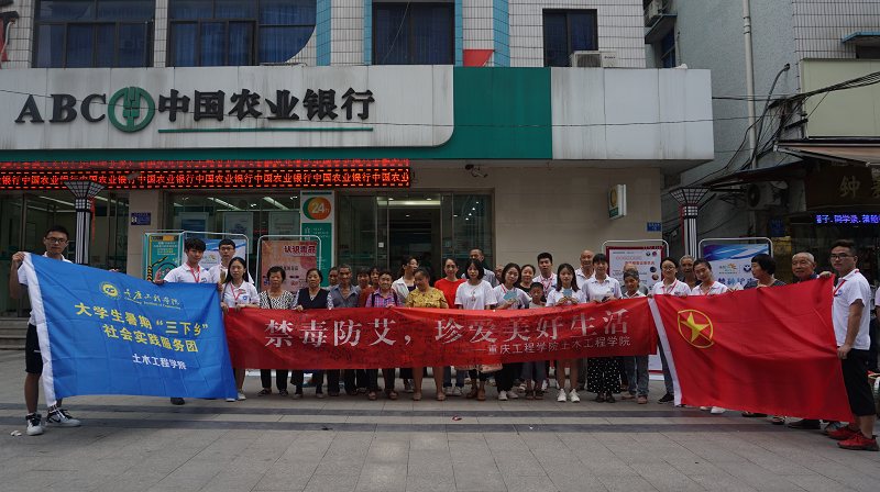 土木工程学院组织的“禁毒防艾宣讲团”前往江津区贾嗣镇通过发放宣传资料、提供法律咨询、开展“感恩生命,健康生活”主题海报展览等方式宣传“禁毒防艾”知识,倡导大家远离毒品,关爱生命、关爱艾滋病患者,取得了良好的宣传效果。