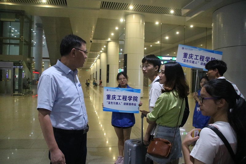 身着重庆工程学院“蓝色引路人”标记体恤的数百名学生志愿者,在带队老师的指导下,不论刮风下雨,都在大足南高铁站、双桥汽车站、重庆火车北站、重庆南坪四公里枢纽站等校外新生接待站点和双桥校区校内接待各站点,为前来报到的3800余名新生及家长提供全程、全方位的热情周到的服务,确保相关迎新工作顺利衔接、平稳有序。