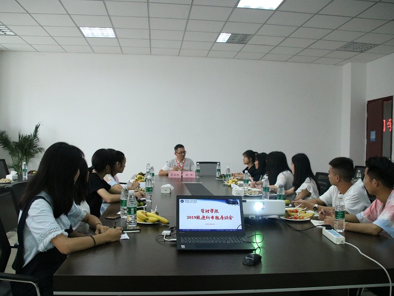 8月31日下午2点,双桥校区办公楼一楼会议室布置一新,管理学院已完成报到入住的新同学们正围聚一堂,与院长简玉刚一起互动分享交流。这是管理学院2019级迎新专题座谈会现场,也是我校二级学院院长首次在迎新工作现场,主动组织开展与新生的面对面沟通交流,用心倾听新同学对大学生活的心理期许,了解他们的专业学习需求,解答他们的生涯发展疑问,真正践行了“以学生为中心”的工作思路。