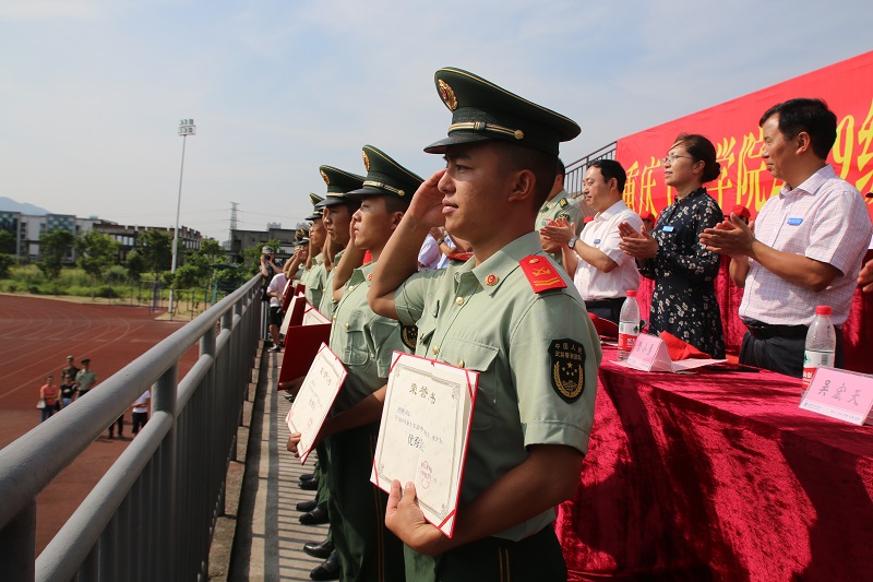 校党委书记、军训领导小组组长张业平宣读了《重庆工程学院表彰2019级新生军训先进集体和个人的决定》,学校领导为军训先进集体和个人进行颁奖。