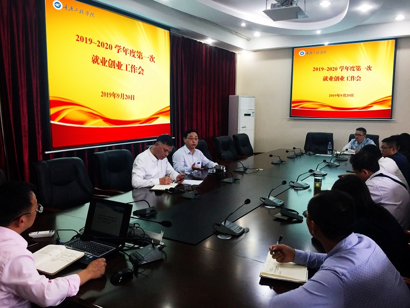 本网讯(文/图 招就处 叶秋清)9月20日下午,我校南泉校区第二会议室召开2019—2020学年度第一次就业创业工作会,校长桂国庆、党委书记兼常务副校长张业平出席,学校招就处相关人员、各专业二级学院院长、党总支书记、就业科长以及毕业班辅导员参加会议,会议由招生就业处副处长刘达斌主持。